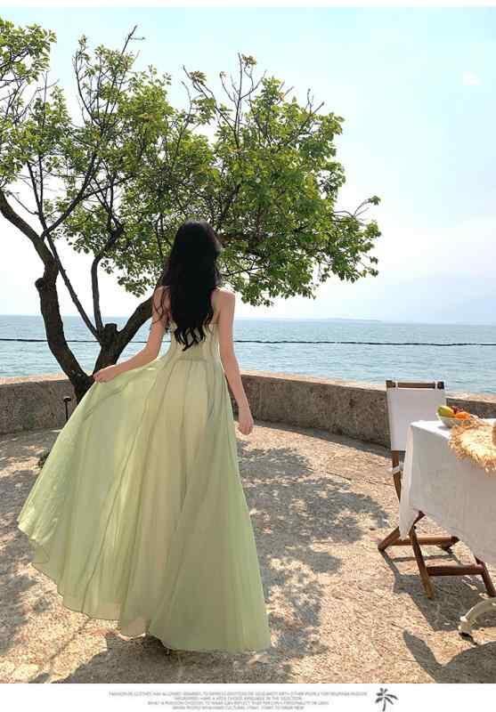 ・柄: 無地 ・スタイル: 度假風、私服名媛 ・袖丈: ノースリーブ ・ネックライン: ノースリーブ ・素材: ポリエステル、スパンデックス ・素材の割合: ポリエステル50-70%、スパンデックス30%以下 ・スカート丈: ロング ・スカートタイプ: キャミソールワンピース ・カラー: グリーン、パープル ・サイズ: S、M、L ・人気の要素: 背中見せ