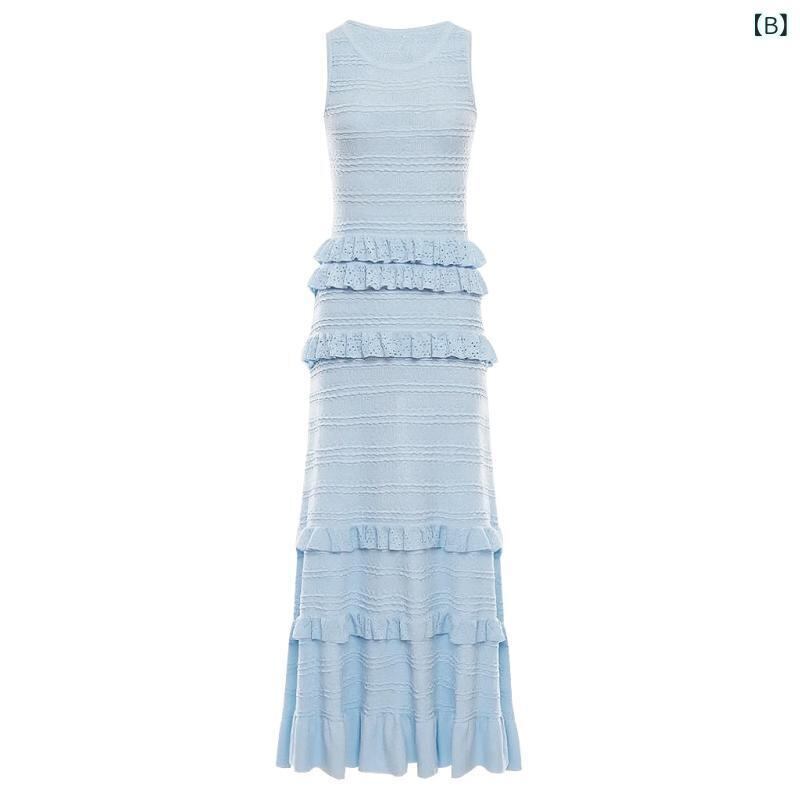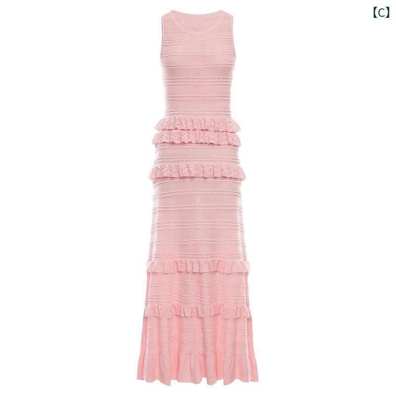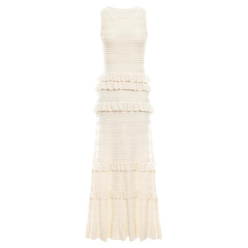 ワンピース レディース 春夏 ノースリーブ ロング丈 フリル レース ラウンドネック 細見え スタイルアップ 上品 エレガント 高級感 レーヨン 通勤 オフィス 普段使い ベージュ