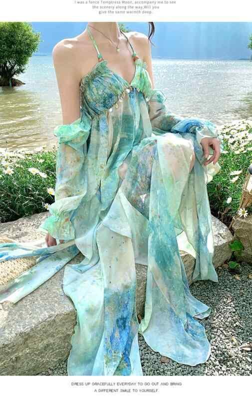 商品仕様: ・カテゴリ: ワンピース ・柄: 抽象 ・スタイル: リゾート ・袖丈: 長袖 ・ネックライン: Vネック ・スカート丈: ロング ・デザイン: アシンメトリー, ホルターネック, 背中開き ・ウエスト: ハイウエスト ・素材: ポリエステル ・素材混率: 50-70% ・カラー: グリーン ・サイズ: S, M, L