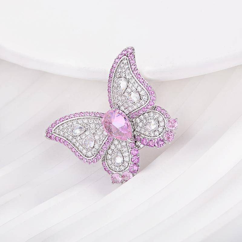 ブローチ レディース ピンク 蝶 バタフライ 動物モチーフ ジルコニア 電気メッキ加工 高級感 ライトラグジュアリー エレガント 個性的 万能