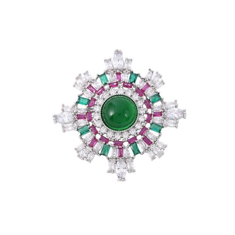 ブローチ ユニセックス 高級感 光沢 エメラルドカラー 雪の結晶 スノーフレーク 花モチーフ 銅製 メタル 電気メッキ加工 コート ジャケット アウター スーツ 普段使い フォーマル プレゼント