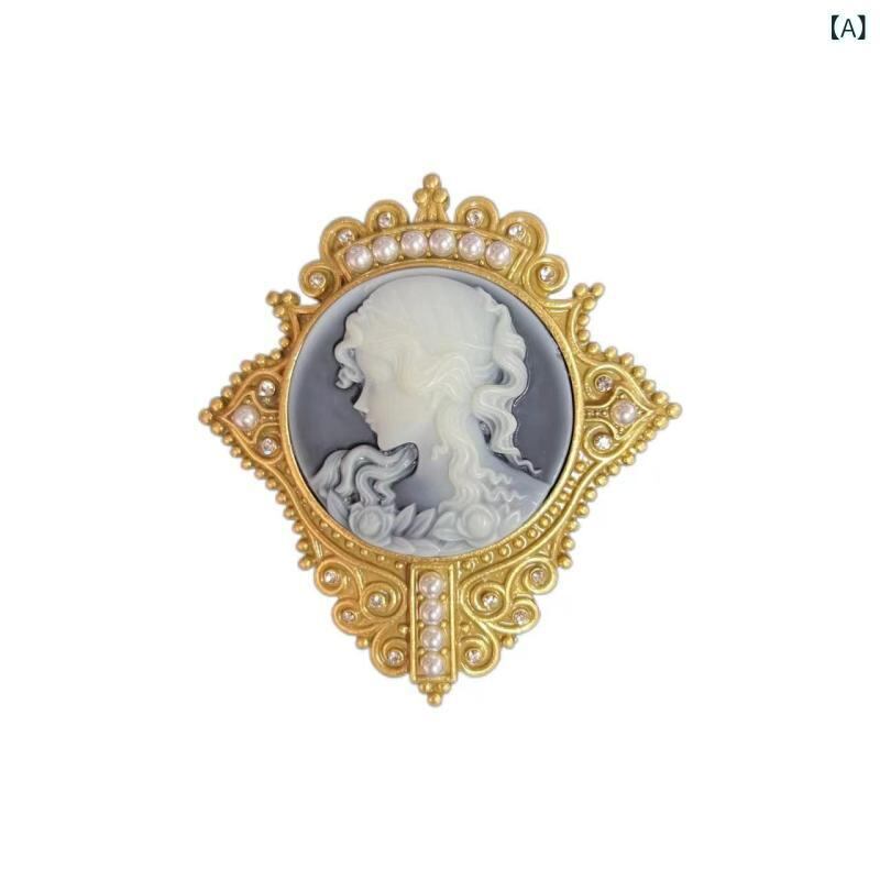 ブローチ レディース アンティーク風 欧米風 合金製 電気メッキ加工 浮き彫り ラインストーン ガラス細工 女性像モチーフ レトロ 重厚感