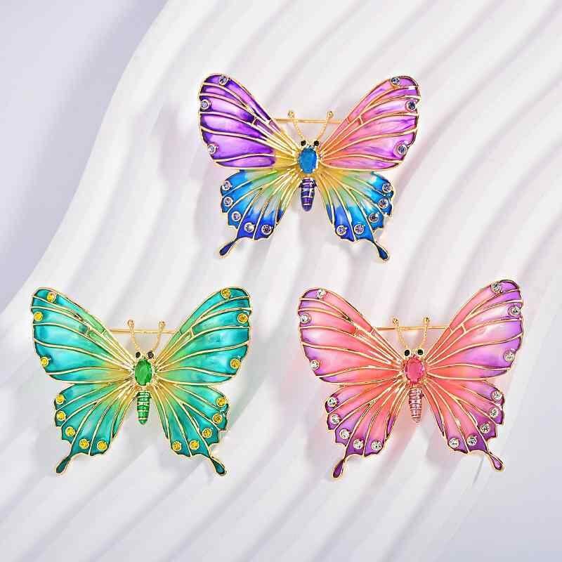 ブローチ レディース 蝶 エナメル 個性派デザイン 上品 高級感 ジルコニア 銅製 電気メッキ加工 スーツ ジャケット フォーマル カジュアル 通勤 オフィス アクセサリー 装飾品 華やか エレガント ギフト 贈り物