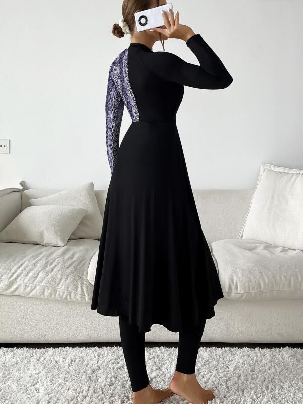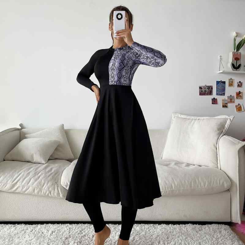 水着 レディース ムスリム 体型カバー ヘビ柄 プリント ハイネック 長袖 ロング丈 春夏 プール ビーチ 海水浴 胸パッド付き ノンワイヤー ポリエステル ナイロン スパンデックス 耐久性 ブラック グリーン