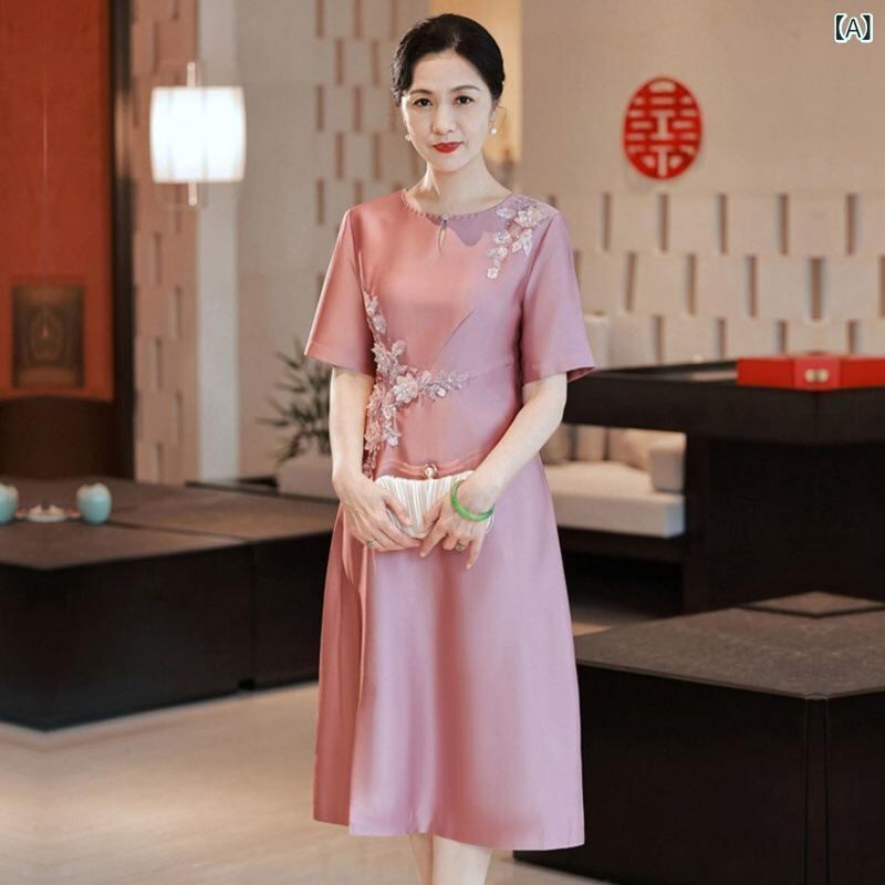 チャイナドレス レディース 母親 ミセス 結婚式 披露宴 フォーマル ワンピース 春夏 大きいサイズ ゆったり 体型カバー 着痩せ 刺繡 上品 エレガント パーティー お呼ばれ ピンク