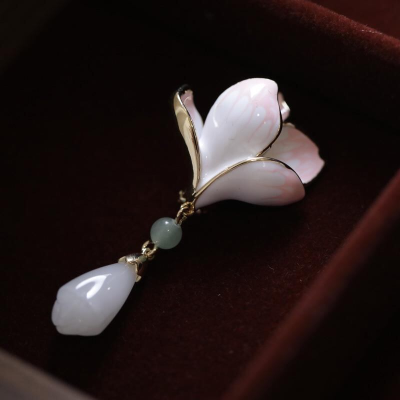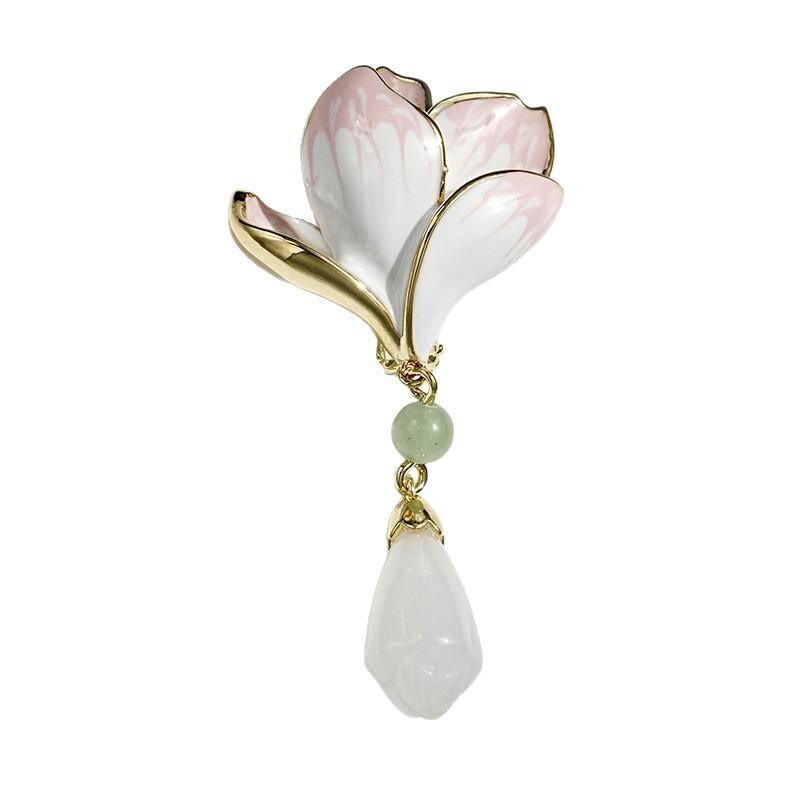 ブローチ 男女兼用 中国風 玉蘭花 銅製 エナメル加工 古風 レトロ 高級感 花モチーフ チャイナドレス スーツ フォーマル カジュアル 上品 エレガント アクセサリー