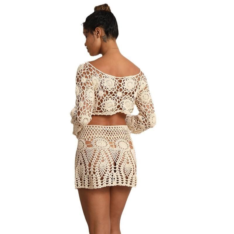 水着 レディース ビキニ セット ビーチカバーアップ ビーチスカート かぎ針編み 手編み アクリル 無地 セクシー ノンワイヤー リゾート 旅行