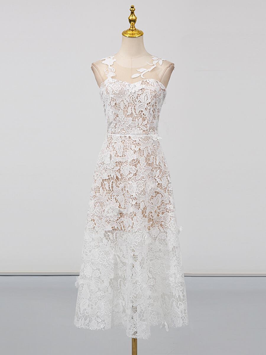 ワンピース レディース エレガント 上品 春夏 刺繡 花柄 切り替え キャミソール ノースリーブ Aライン ロング丈 ハイウエスト スリムフィット 高級感 レース リゾートドレス ポリエステル ホワイト 白