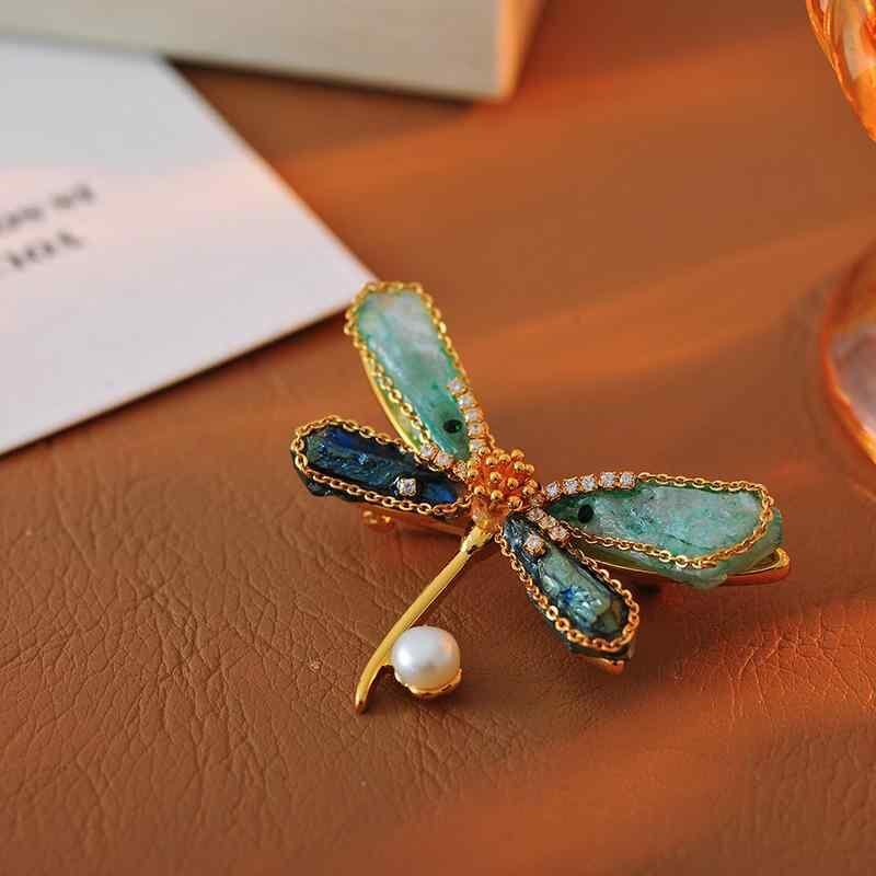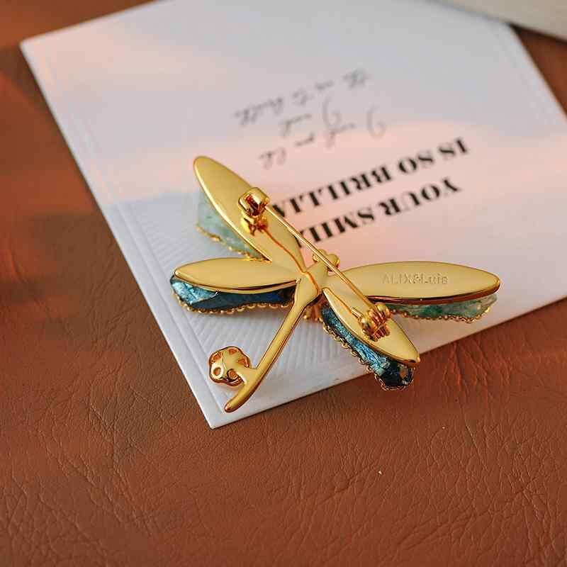 ブローチ レディース トンボモチーフ 真鍮 金メッキ クリスタル 上品 エレガント 高級感 ハンドメイド 個性的 ピンブローチ アクセサリー 装飾 ストールピン ショール留め 通勤 普段使い