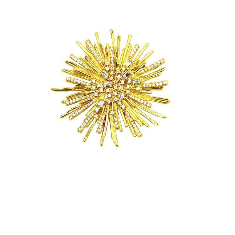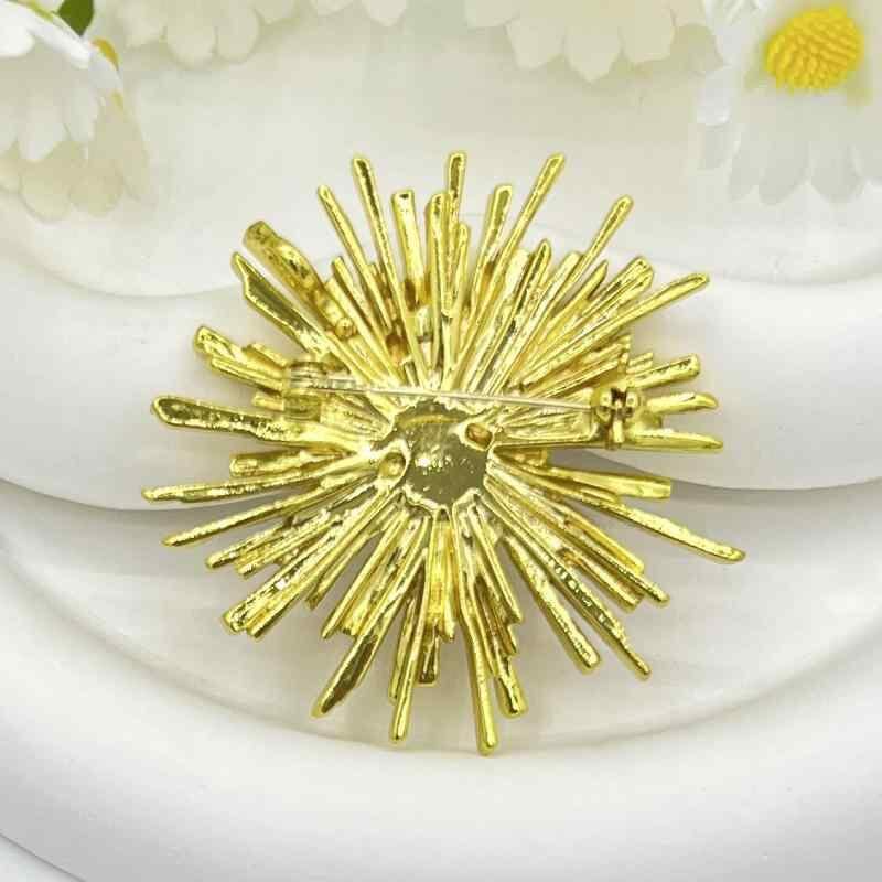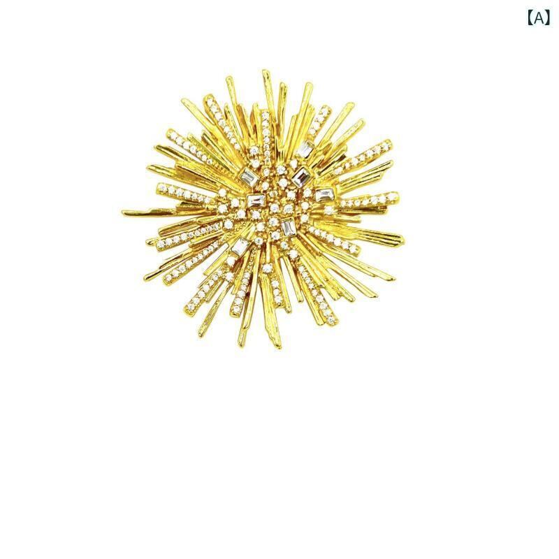ブローチ レディース 女性用 ジルコニア 銅製 電気メッキ加工 花火デザイン 幾何学模様 ラインデザイン 高級感 上品 軽量ラグジュアリー 洗練 個性的 ユニーク ゴールド 春夏 フォーマル パーティー