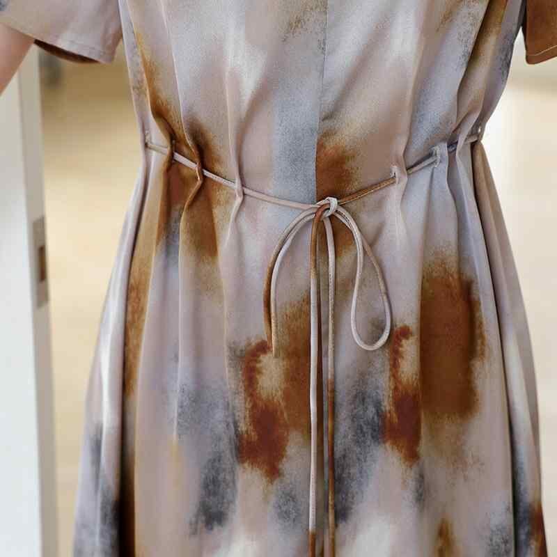 ワンピース レディース ミセス 春夏 シフォン 小花柄 Vネック Aライン 半袖 ミモレ丈 モダンチャイナ リゾート ゆったり さわやか お出かけ ポリエステル グレージュ