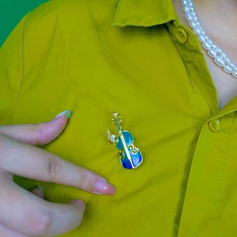 ブローチ レディース ヴァイオリン エナメル カラフル フレンチレトロ アンティーク調 銅製 電気メッキ加工 エレガント 上品 スーツ ジャケット 露出防止 胸元隠し パーティー 結婚式 ドレスコード アクセサリー プレゼント