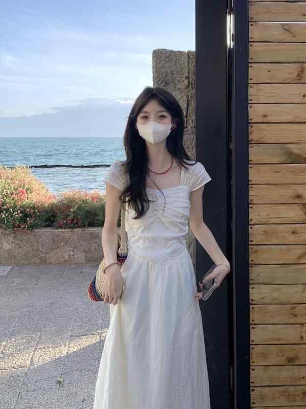 ワンピース レディース 春夏 ノースリーブ フラワー柄 立体花 スクエアネック Aライン プリーツ ウエストマーク フレア ロング丈 ビーチ リゾートスタイル 上品 フレンチエレガント