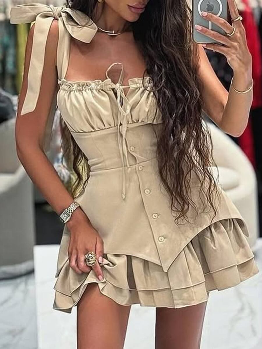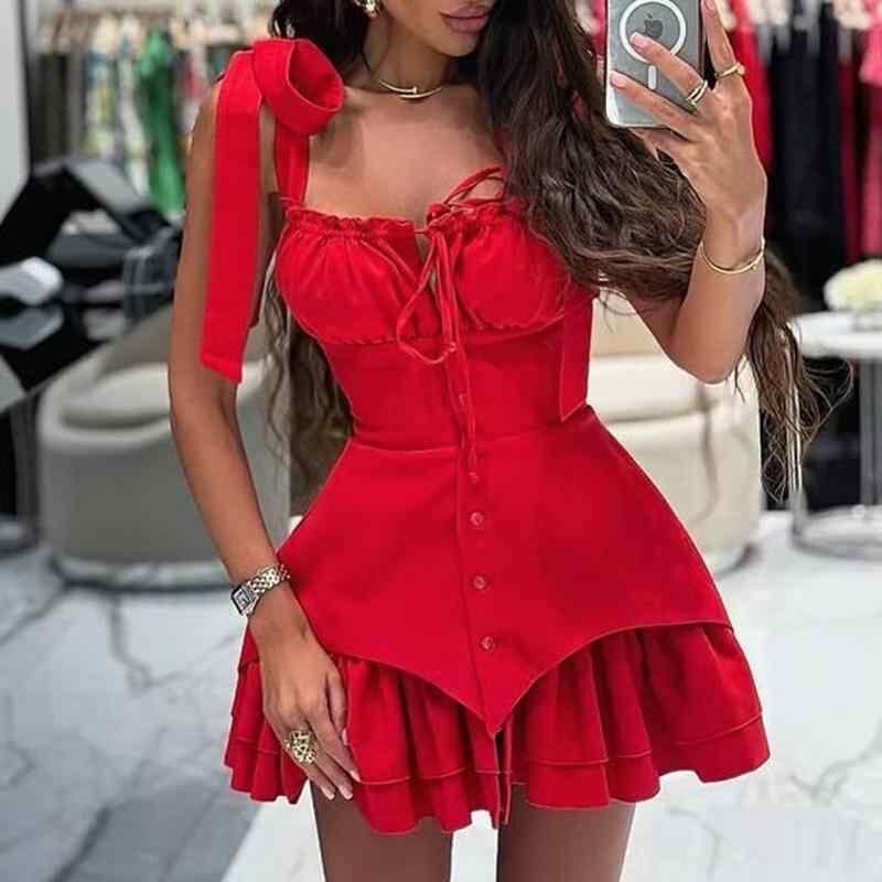 ワンピース レディース ビーチリゾート リゾートスタイル キャミソール ショート丈 ウエストリボン ウエストシェイプ 着痩せ 無地 ハイウエスト セクシー ポリエステル スパンデックス 春夏