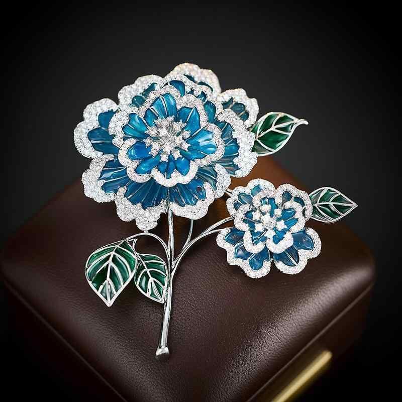 ブローチ レディース 牡丹 花 七宝 エナメル ジルコニア 銅製 中国風 オリエンタル エレガント 上品 高級感 パーティー フォーマル 結婚式 ドレス スーツ ジャケット アクセサリー パープル ブルー