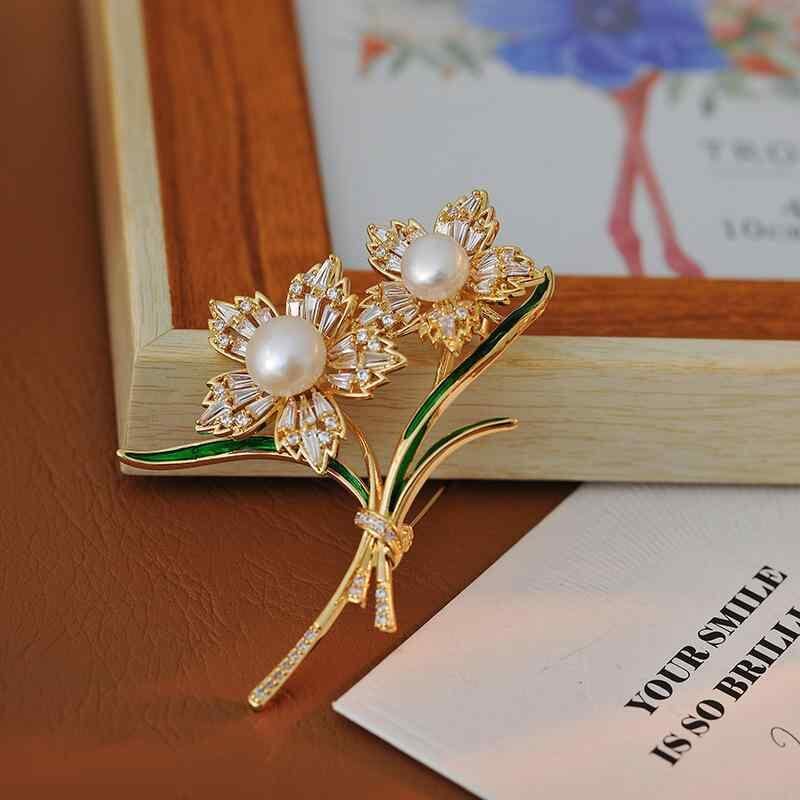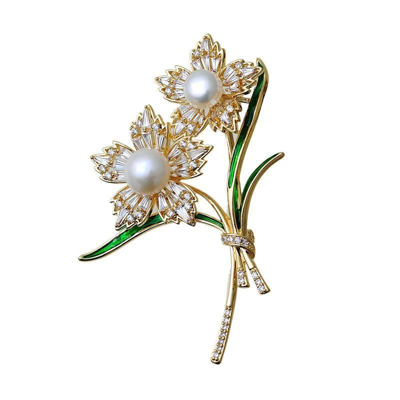 ブローチ 淡水パール デイジー 花モチーフ 植物モチーフ マイクロパヴェ ジルコニア 銅合金製 電気メッキ加工 上品 エレガント 宮廷風 レトロ 韓国発 アクセサリー ピンブローチ