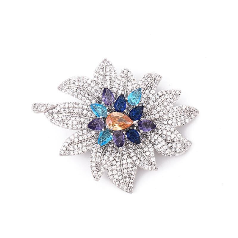 ブローチ コサージュ レディース 花 フラワー カラフル ジルコニア 高品質 エレガント 上品 チャイナ風 スーツ ジャケット ドレス フォーマル アクセサリー 銅製 贈り物 プレゼント