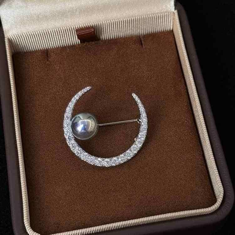 ブローチ パール レディース セレモニー コンサート 結婚式 贈り物 おしゃれ 胸飾り 高級感 レトロ 月 ジルコン 上品 コサージュ