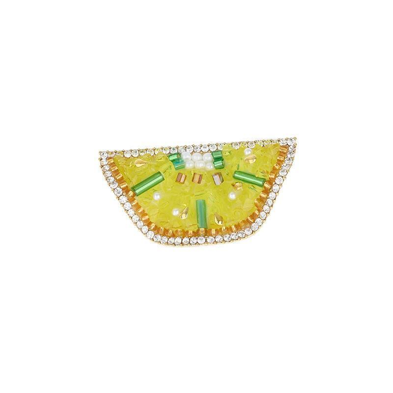 ブローチ レディース 女性用 夏 レモン フルーツモチーフ グリーン イエロー 模造水晶 ラインストーン 銅製 電気メッキ加工 上品 高品質 エレガント 個性的 ファッション小物