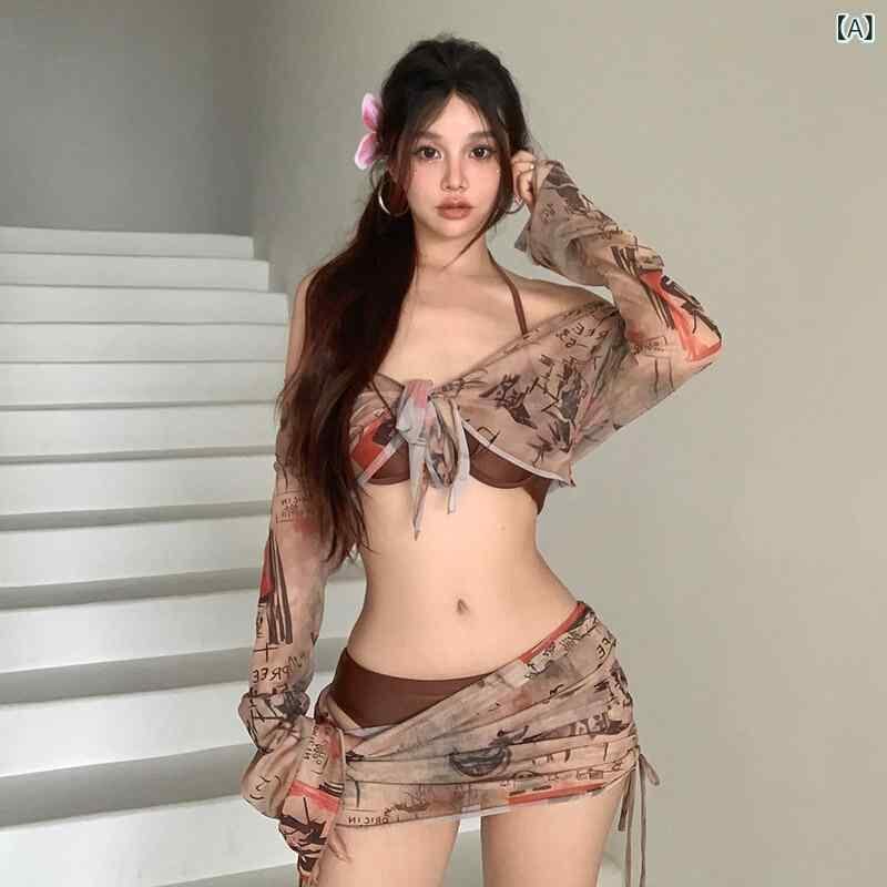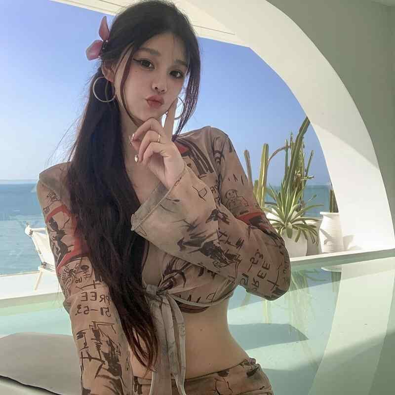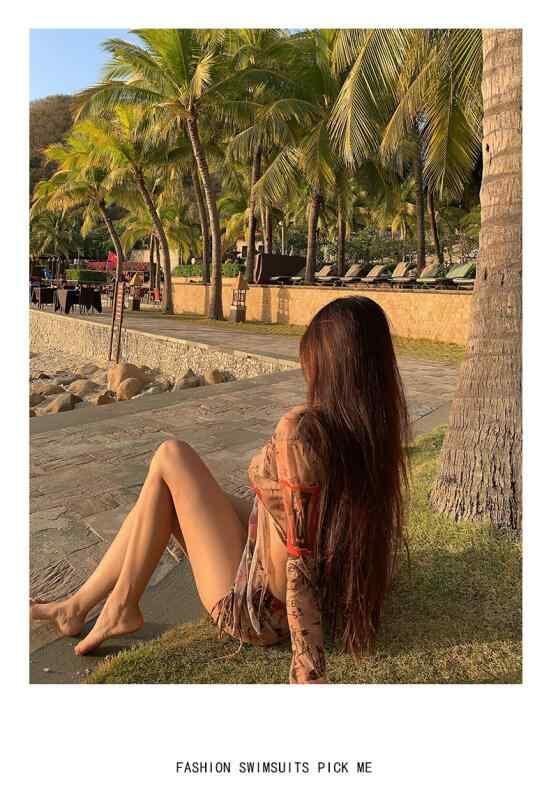 水着 レディース セパレート レトロ 純欲 カバーアップ ビキニ セクシー リゾート ワイヤー入り パッド付き 長袖 バックシャン 体型カバー ポリエステル素材