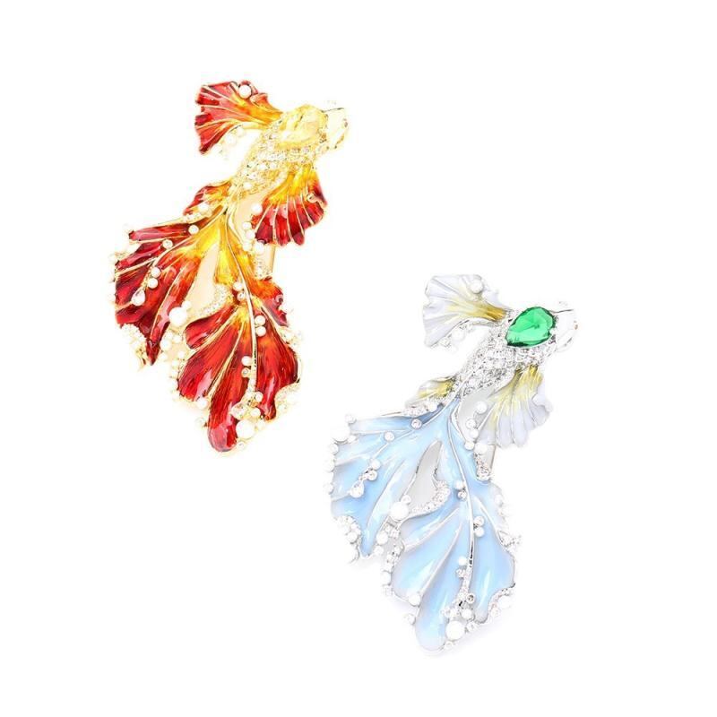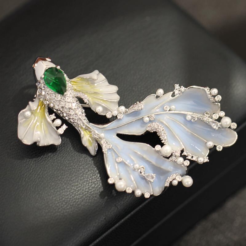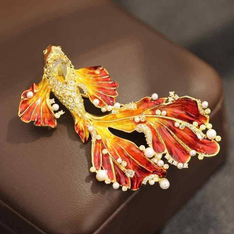 ブローチ 女性用 ライトラグジュアリー 高級感 2色 エナメル加工 鳳凰 錦鯉 マリンモチーフ 上品 個性的 銅製 電気メッキ ファッション 通勤 アクセサリー