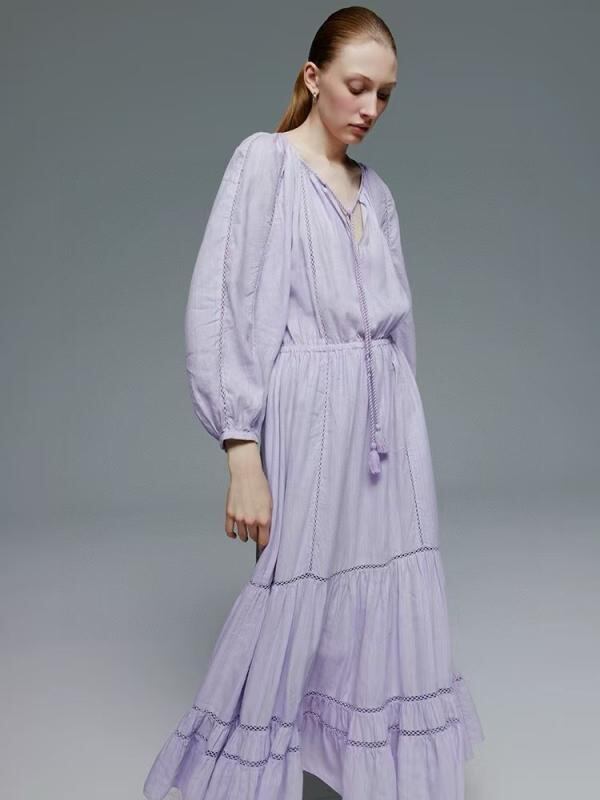 ワンピース レディース 女性用 フレンチスタイル 上質 凝った刺繍 Vネック ロング丈 フレアスカート 綿100% リゾート ビーチ 春夏 カジュアル スイート プルオーバー 無地