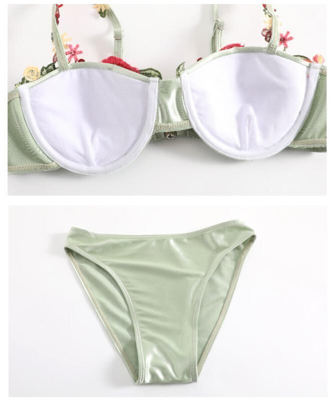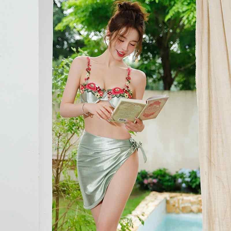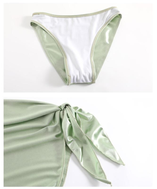 水着 レディース セクシー ビキニ ワイヤー入り プッシュアップ セパレート 3点セット 体型カバー パッド入り 速乾 高伸縮性 春夏 プール 海水浴 リゾート ナイロン スパンデックス グリーン
