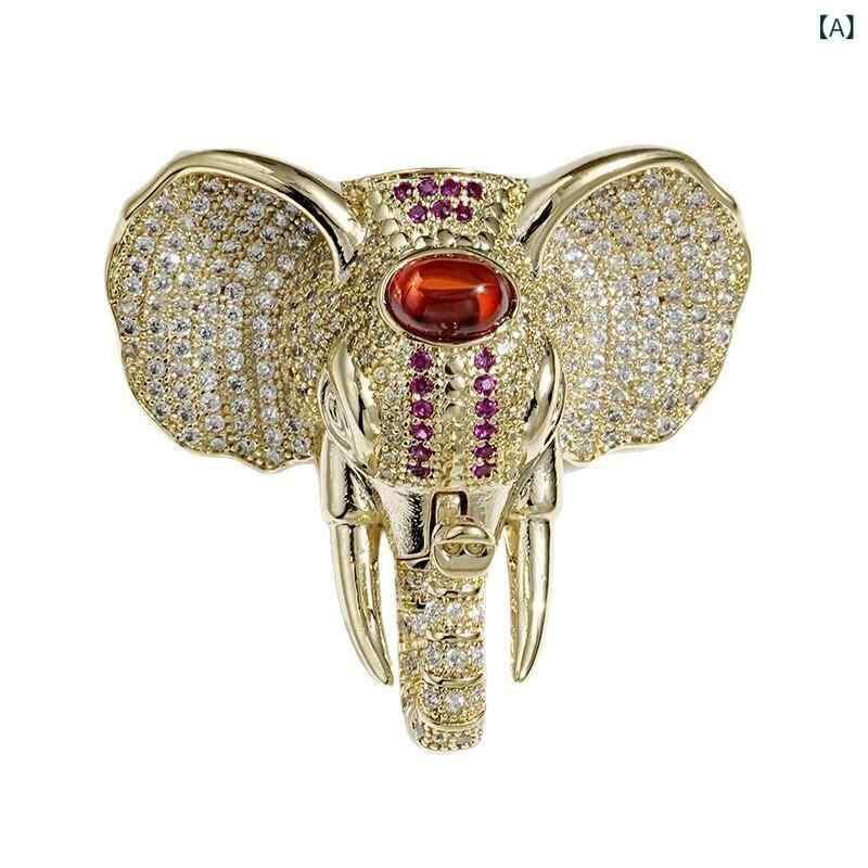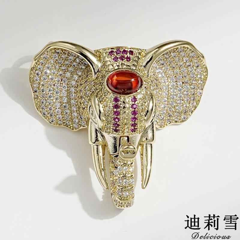 ブローチ 男女兼用 ユニセックス 高級感 精巧 マイクロパヴェセッティング ジルコニア 象 動物モチーフ 東南アジア風 豪華 エレガント 銅製 ルビーカラー 欧米スタイル ファッション小物 プレゼント ギフト