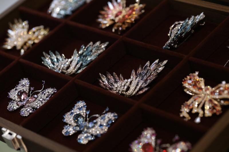 ブローチ ユニセックス 高級感 透明感 湖水色 アクアブルー グラデーション クリスタル 蝶 バタフライ 羽 パーティー フォーマル ドレス 銅製 アクセサリー ギフト