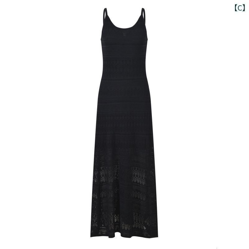ワンピース 春夏 フレンチ エレガント Uネック ノースリーブ スリムフィット 着痩せ 透かし編み ニット キャミソール ロング丈 再生繊維 ナイロン ホワイト グリーン ブラック
