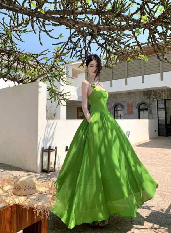商品仕様: ・素材: 海島絨、ポリエステル、スパンデックス ・柄: 無地 ・スタイル: 吊りスカート ・スカート丈: ロング ・スカートタイプ: 吊りスカート ・ネックライン: ノースリーブ ・袖丈: ノースリーブ ・ウエスト: 調節可能 ・色: 翠グリーン ・サイズ: S、M、L、XL ・タイプ: プライベート ・前立て: プルオーバー ・流行の要素: 背中開き ・カテゴリー: ワンピース ・スタイル: バケーションスタイル ・クロスボーダースタイル: エレガント