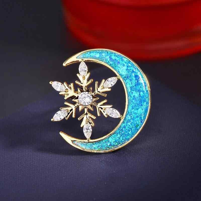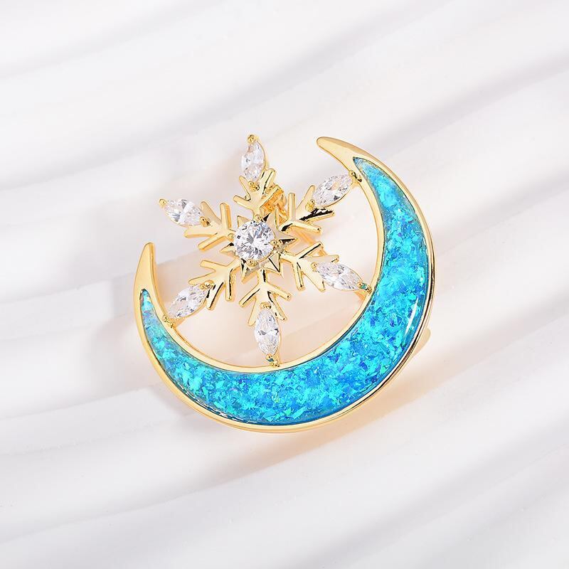 ブローチ レディース 星 月モチーフ ジルコニア 高級感 ライトラグジュアリー エレガント 独創的 銅製 電気メッキ加工 ファッション小物 胸元飾り 通勤 オフィス フォーマル 普段使い