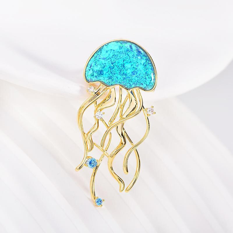 ブローチ レディース クラゲ モチーフ ジルコニア 銅製 電気メッキ加工 個性的デザイン 上品 エレガント 高級感 多用途 オールシーズン対応 アクセサリー ファッション小物 ゴールド シルバー
