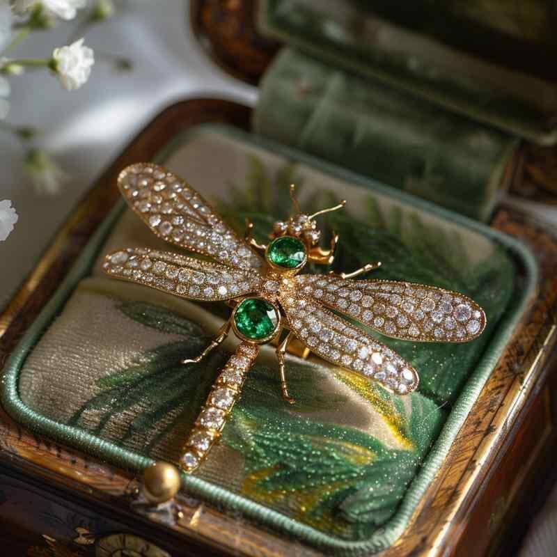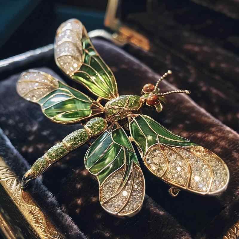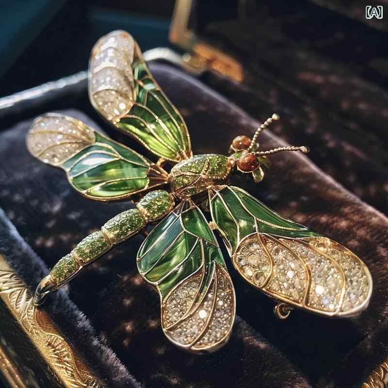 ブローチ 男女兼用 リアル トンボ 蜻蛉 レトロ ヴィンテージ 華やか 高級感 銅製 電気メッキ加工 緑色 装飾 プレゼント 夏