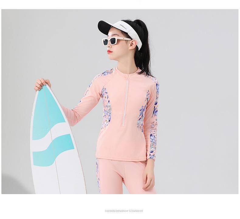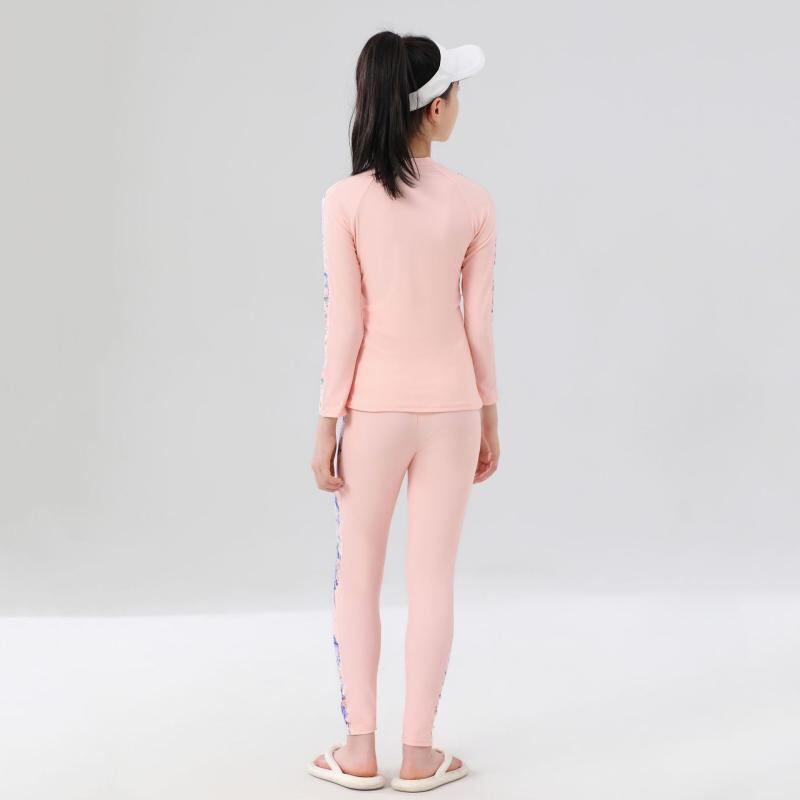 水着 キッズ 女の子 セパレート 長袖 ロングパンツ UVカット 体型カバー ビーチ プール 海水浴 マリンスポーツ 軽量 速乾 伸縮性 ナイロン スパンデックス ピンク