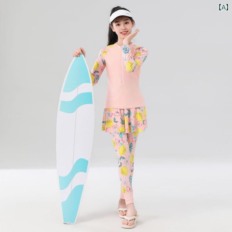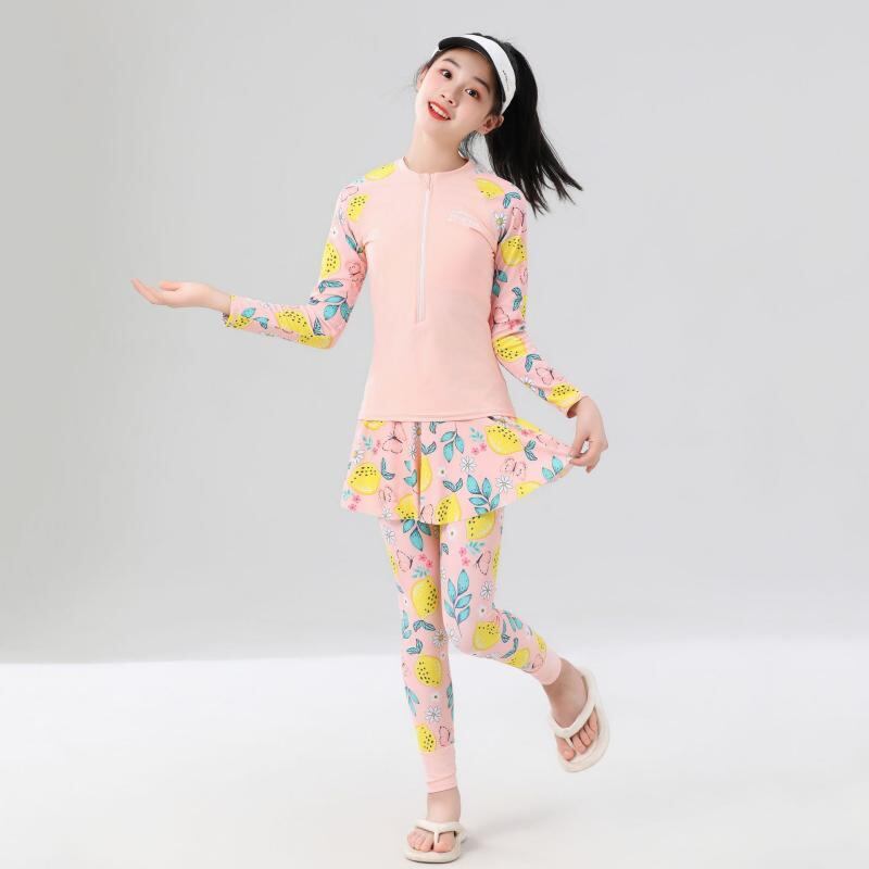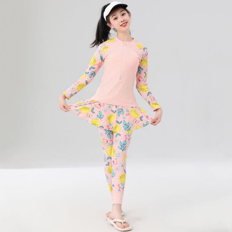 水着 キッズ ジュニア 女の子 セパレート 長袖 ロングパンツ 日焼け防止 UVカット 体型カバー 春夏 ビーチ プール 海水浴 ナイロン スパンデックス ピンク