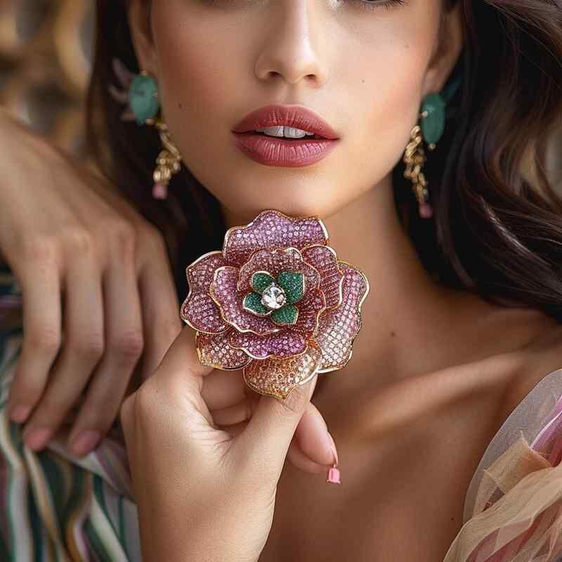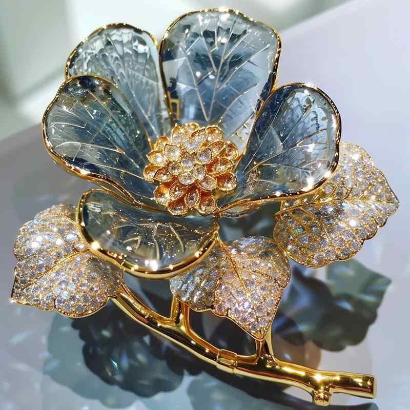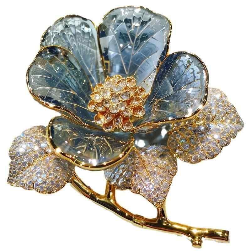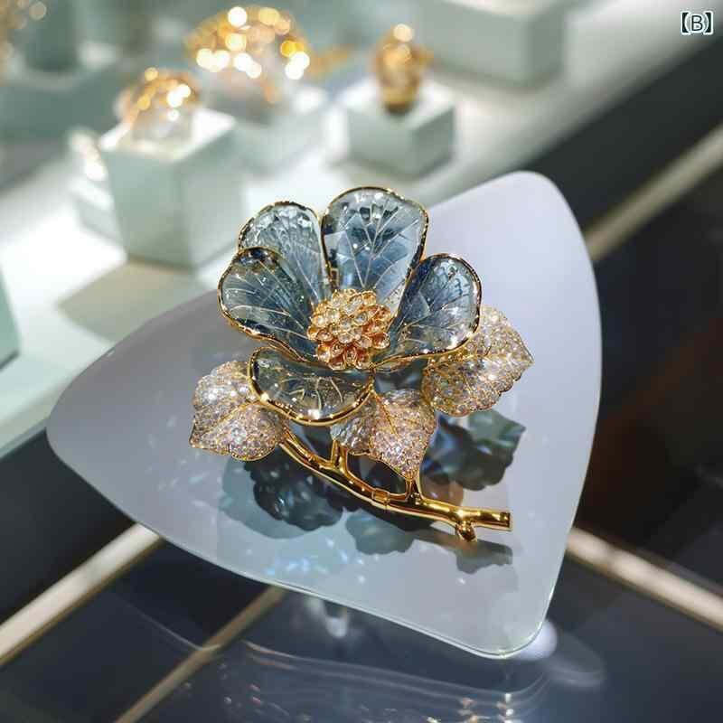 ブローチ ネックレス レディース 女性用 銅製 ロイヤルテイスト 高級感 ジュエリー ブルー クリスタル カメリア フラワー キラキラ 輝き 通勤 フォーマル 普段使い