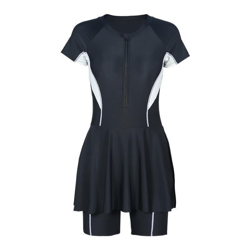 水着 キッズ 女の子 ジュニア ティーン ワンピース オールインワン ハーフパンツ ショートパンツ プール 温泉 水泳 レジャー 高伸縮性 ストレッチ素材 無地 シンプル ベーシック ブラック 黒 ナイロン ポリエステル混紡