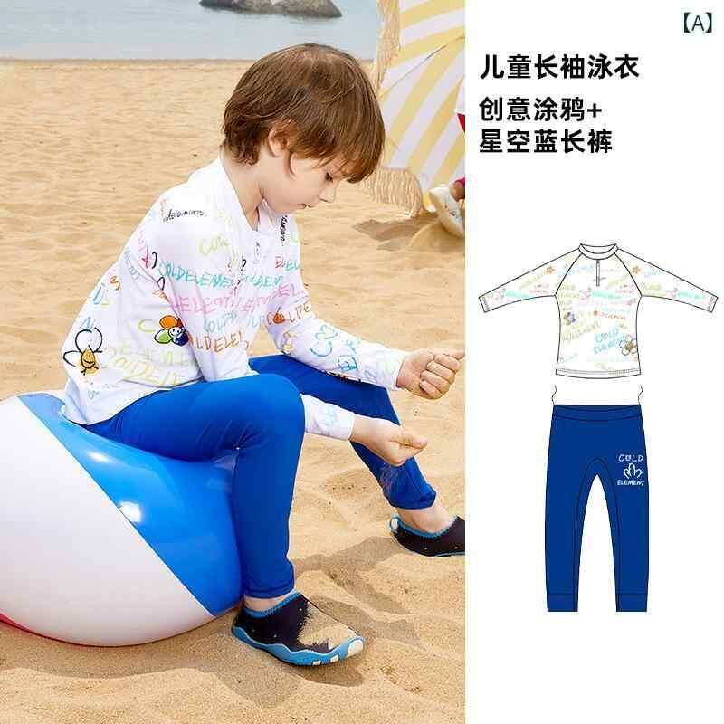 水着 キッズ 男の子 女の子 ジュニア 長袖 ロングスリーブ ロングパンツ セパレート 分体式 UVカット 日焼け防止 保温性 防寒 速乾性 スイミング プール 海水浴 温泉 レジャー ポリエステル スパンデックス