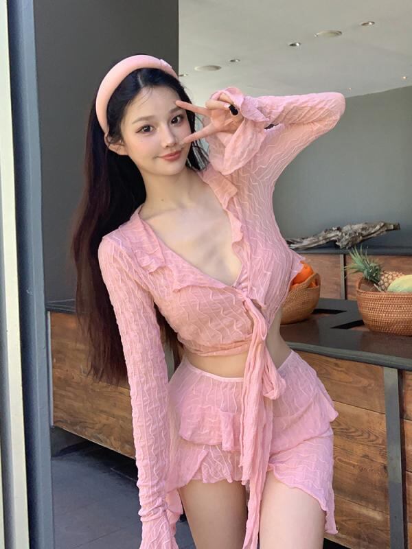 商品仕様: ・適用性別: 女性 ・適用年齢: 成年 ・柄: 無地 ・機能: 速乾、セクシー、タイト、バックレス、高弾性 ・ワイヤー: 胸パッド付き、ワイヤーなし ・素材: ポリエステル、ナイロン82% ・裏地: ポリエステル、スパンデックス18% ・重量: 約150g ・シーン: フィットネス、スポーツ、ダンス、水泳 ・カラー: ブラック、ベージュ、ピンク ・サイズ: M、L、XL ・袖丈: 長袖 ・スタイル: 三角パンツ