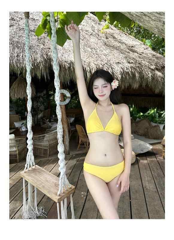 カテゴリ: 水着 スタイル: 無地、セクシー、タイト、バックレス、ハイストレッチ 対象: 女性、成人 パッド: 胸パッド付き、ワイヤーなし 主な素材: ポリエステル、ナイロン82% 裏地: ポリエステル、スパンデックス18% 用途: フィットネス、スポーツ、ダンス、水泳 カラー: イエロー(4点セット) サイズ: S、M、L 袖丈: 長袖 タイプ: 三角パンツ