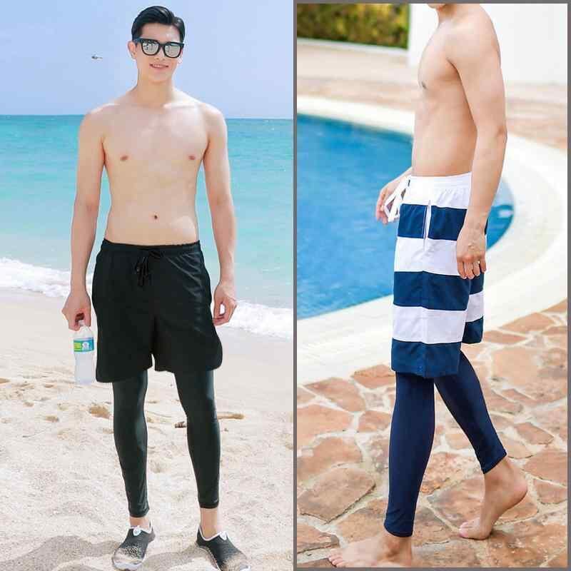水着 スイムウェア メンズ フェイクレイヤード ラッシュガード ボトムス ロング丈 ダイビング サーフィン ビーチ 温泉 リゾート マリンスポーツ 水陸両用
