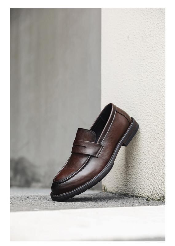紳士靴 革靴 メンズ スリッポン カジュアルシューズ 普段使い 通気性 ヒールアップ 合成皮革 ローヒール チャンキーヒール 無地 ステッチ レトロ ブラック ブラウン