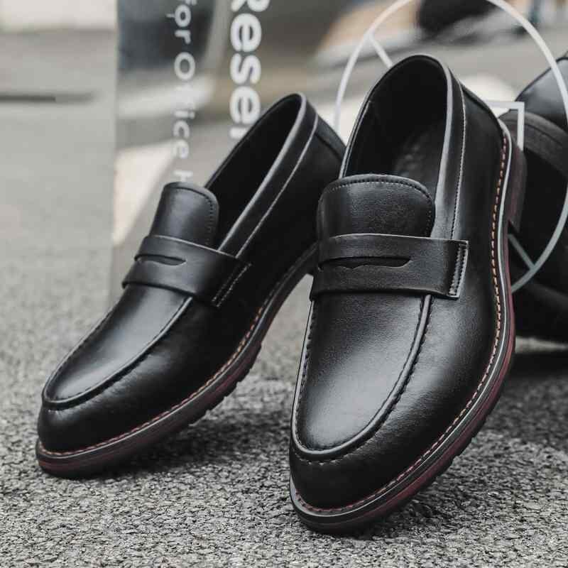 紳士靴 ローファー メンズ スリッポン ビジネス カジュアル 革靴 レザーシューズ 英国風 高級感 万能 トレンド 通気性 PUレザー チャンキーヒール ゴム底 シークレットヒール ステッチ 無地