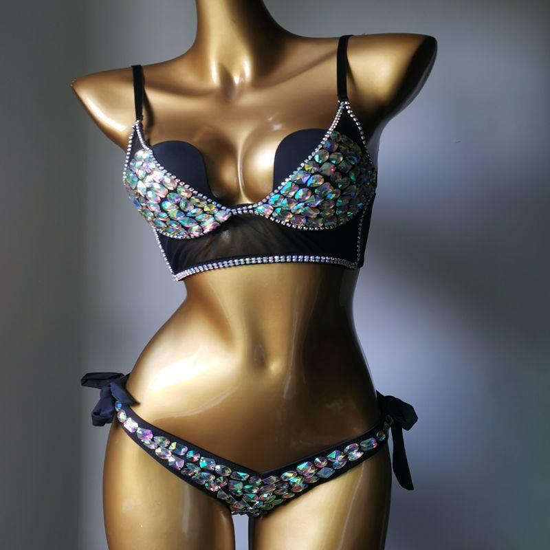 ビキニ レディース ワイヤー入り モールドカップ ジルコニア ラインストーン 煌めく セクシー ナイトクラブ プール ビーチ 水着 スイムウェア ナイロン 伸縮性 ブラック ホワイト スキンカラー 春夏