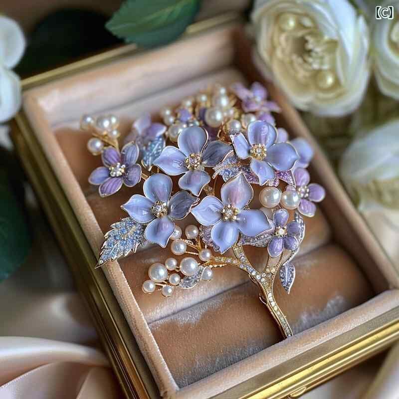 ブローチ 女性用 ライラック フラワーモチーフ レトロ アンティーク調 オリジナルデザイン 高級感 上品 エレガント 銅製 電気メッキ加工 多機能 2WAY 胸飾り アクセサリー プレゼント ギフト ライトラグジュアリー