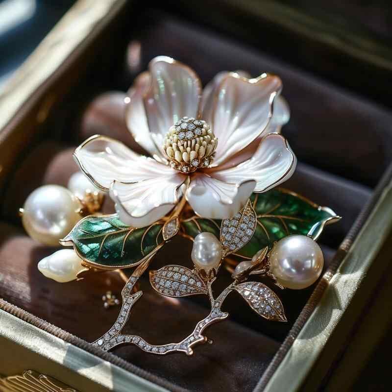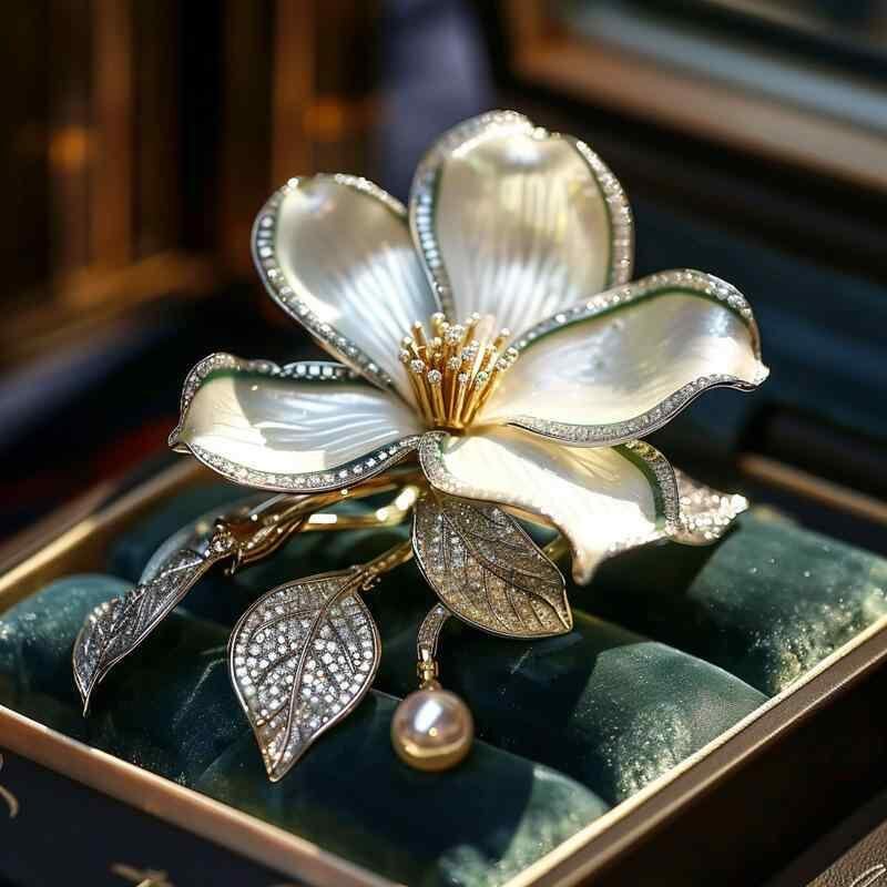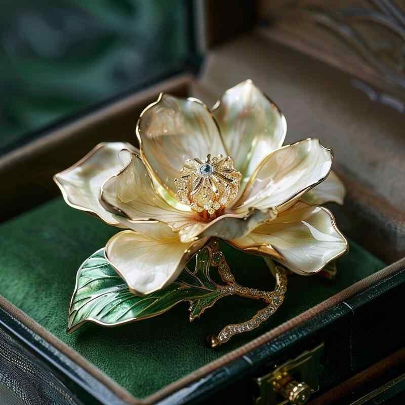 ブローチ レディース 玉蘭花 マグノリア エナメル 七宝焼き風 中華風 レトロ クラシック アンティーク調 高級感 エレガント 清楚 上品 銅製 ホワイト フラワーモチーフ ファッション小物 装飾品