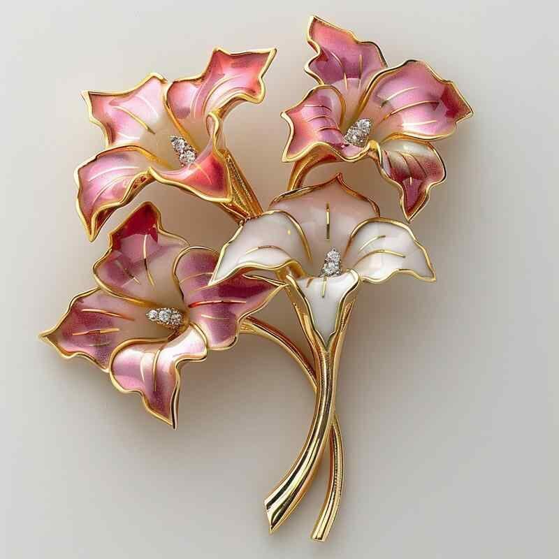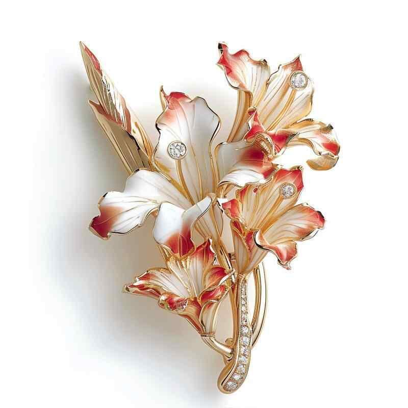ブローチ レディース 高級感 銅製 エナメル彩 花柄 グラジオラス 田園風 ナチュラル フェミニン スーツアクセサリー 装飾品 ギフト