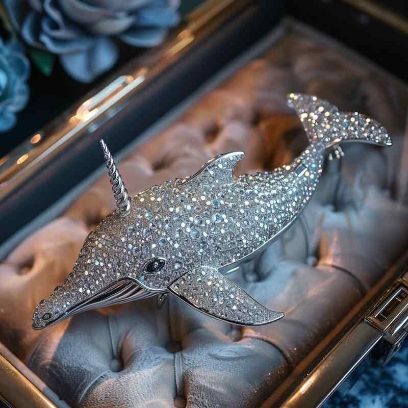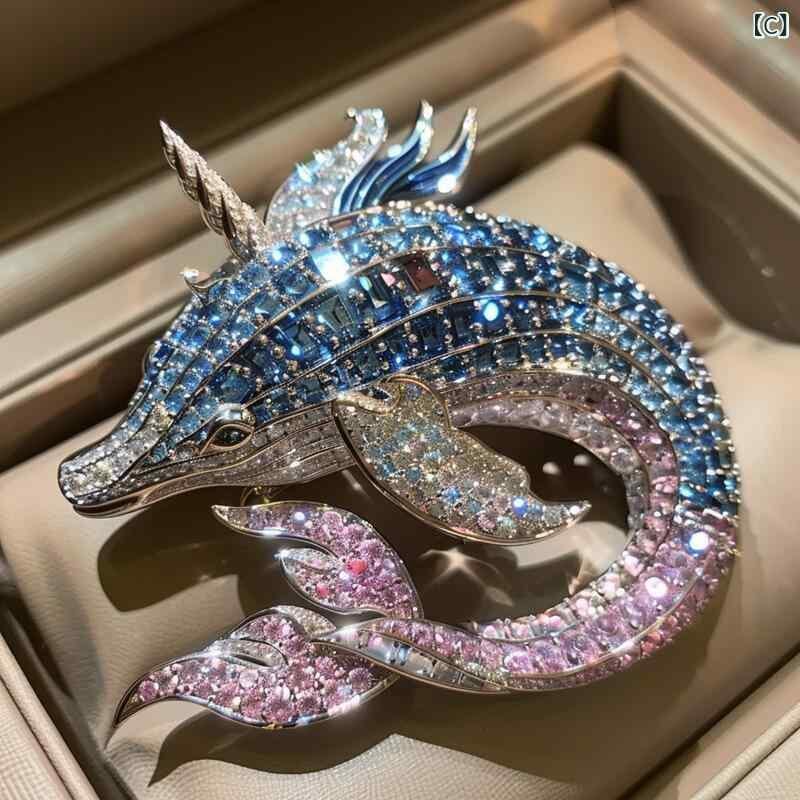 ブローチ 男女兼用 ユニコーン クジラ フルジルコニア ラインストーン 高級感 銅製 海洋生物モチーフ きらきら 華やか 上品 2WAY ファッション 通勤 パーティー 普段使い 電気メッキ加工