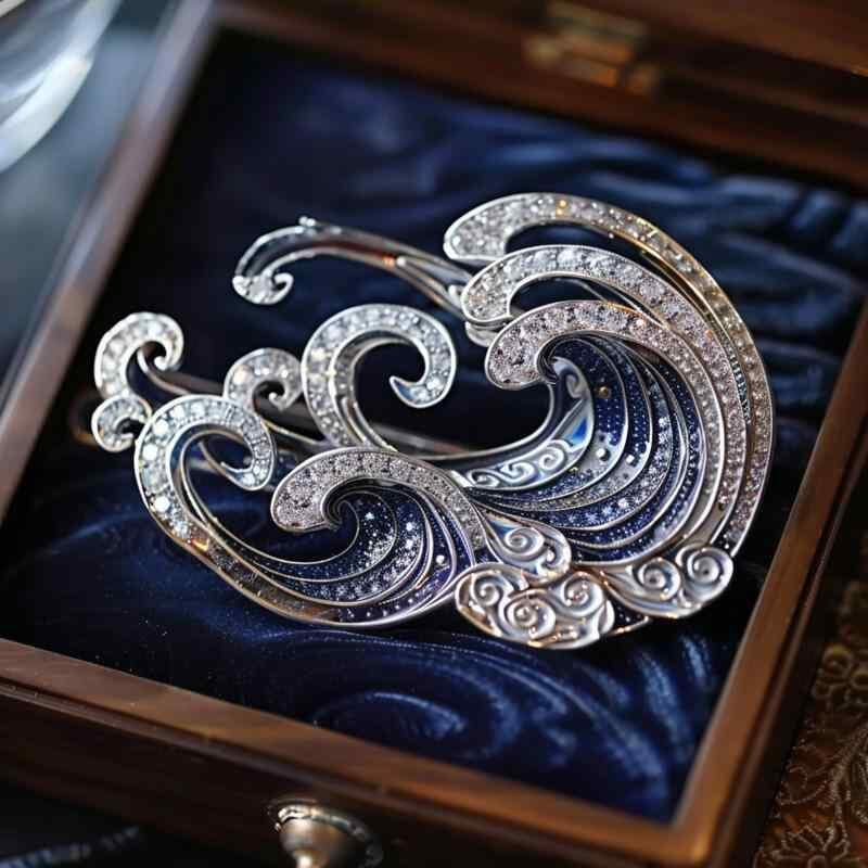 ブローチ メンズ レディース ユニセックス 新中華スタイル レトロモダン 山水 海波モチーフ マイクロセッティング 銅製 高級感 ファッション 通勤 ビジネス ギフト アクセサリー